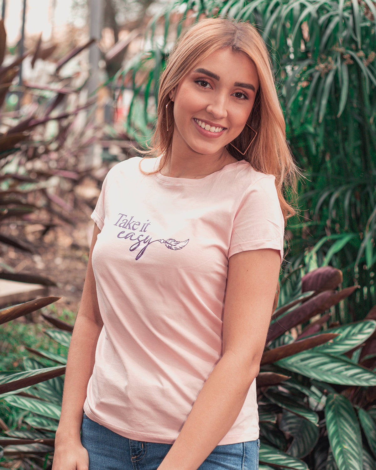 Camiseta rosada estampada